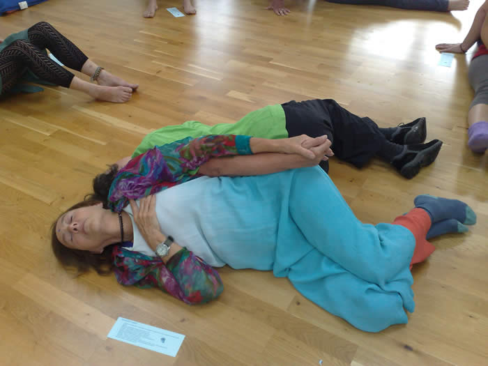 usually does not open herself in workshops. However she resonated with my playful approach which set her at ease right from the start. She felt safe and protected and allowed herself being carried along, exploring the depth of her being.